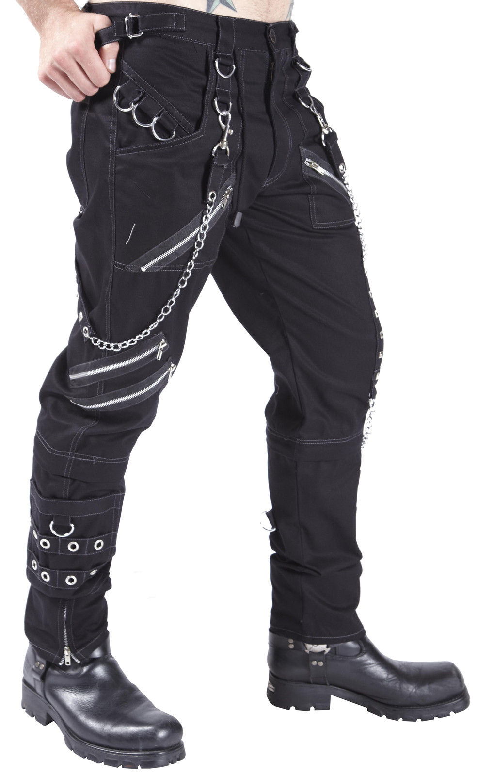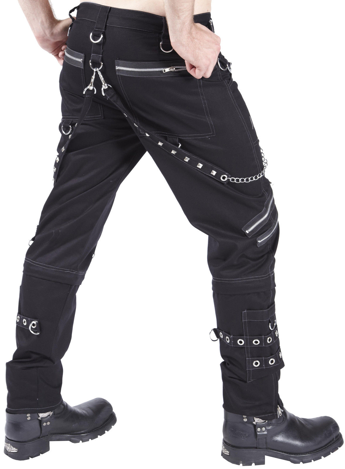 The trousers are covered with an assortment of zips, straps, stud pyramids, D Rings and metal eyelets, to many to describe!