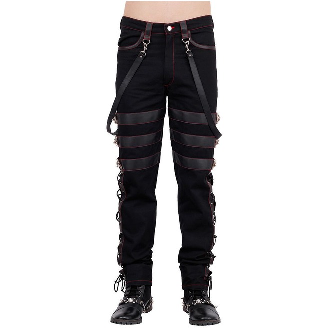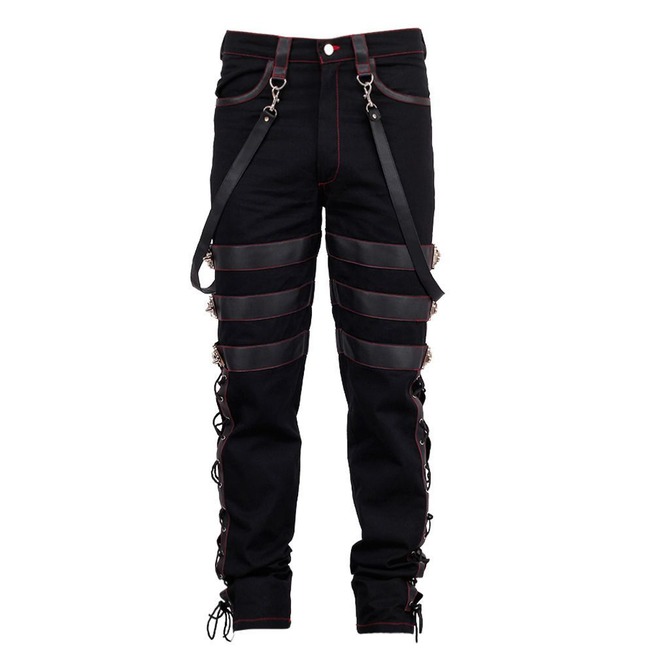 Steampunk Pants Men Black Gothic Vintage Cotton PVC Red Thread Trousers