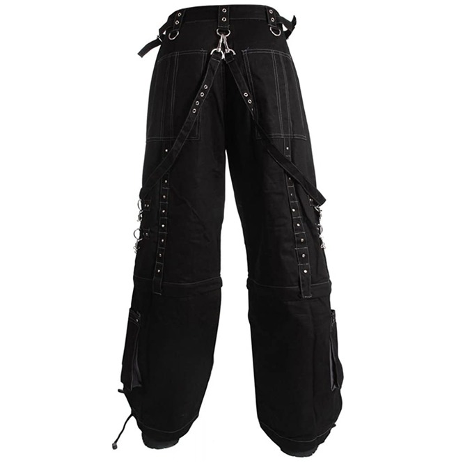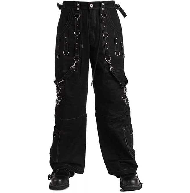 Men Gothic pants. Composition 100% cotton. Facilities: two front, two rear, two side pockets, slit opening with button and zipper, metal accessories black.