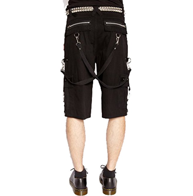 Men Gothic Bondage Shorts Punk Metal Rock Black Chain Strap Zipper Goth Short