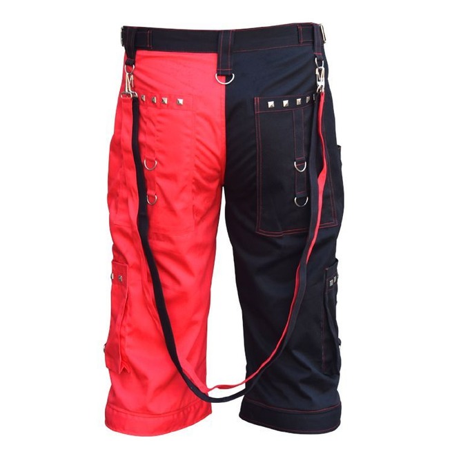 Men Gothic Bondage Red Thread Shorts Punk Metal Rock Goth Short