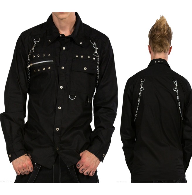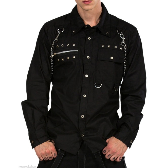 Men Gothic Cotton Shirt With Metal Studs And Chains