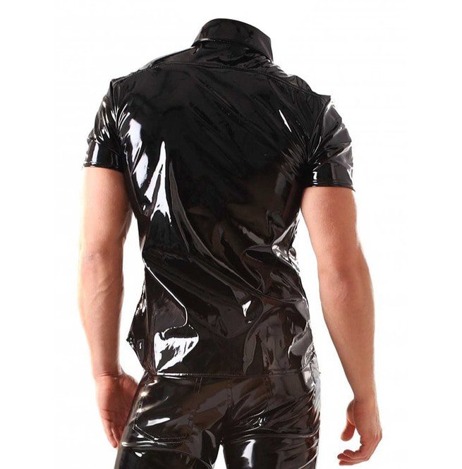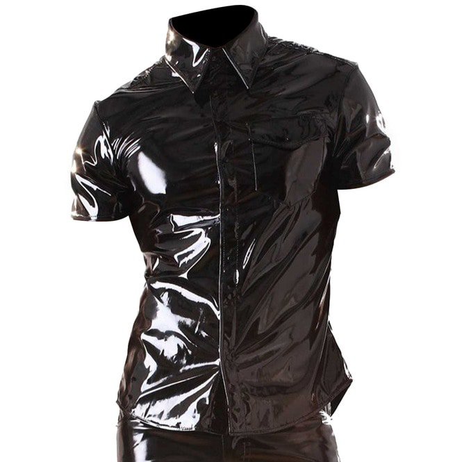 Punk Short Sleeve Shirt Pvc Vinyl Fetish Emo Biker Shirt