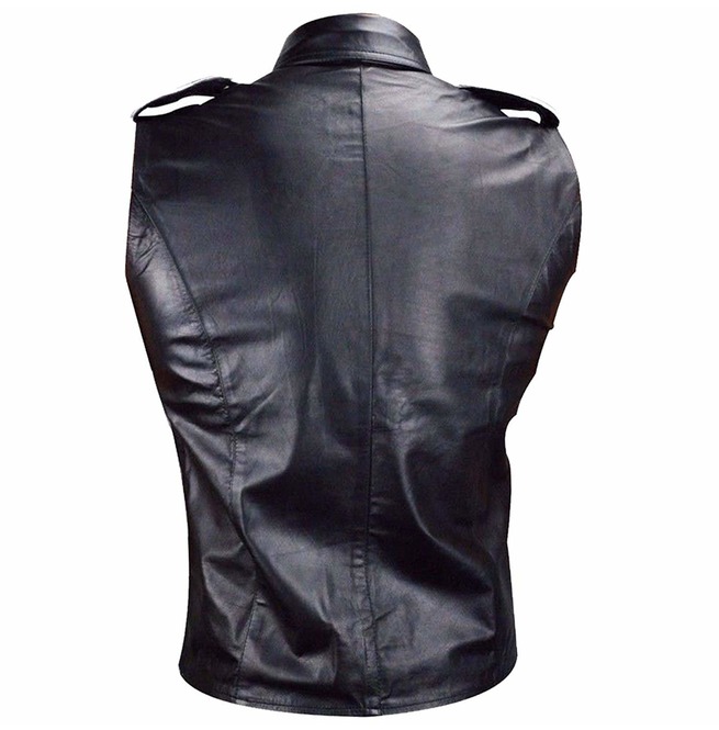 Gothic Mens Military Uniform Vest Sheep Leather Goth Hot Police Waistcoat