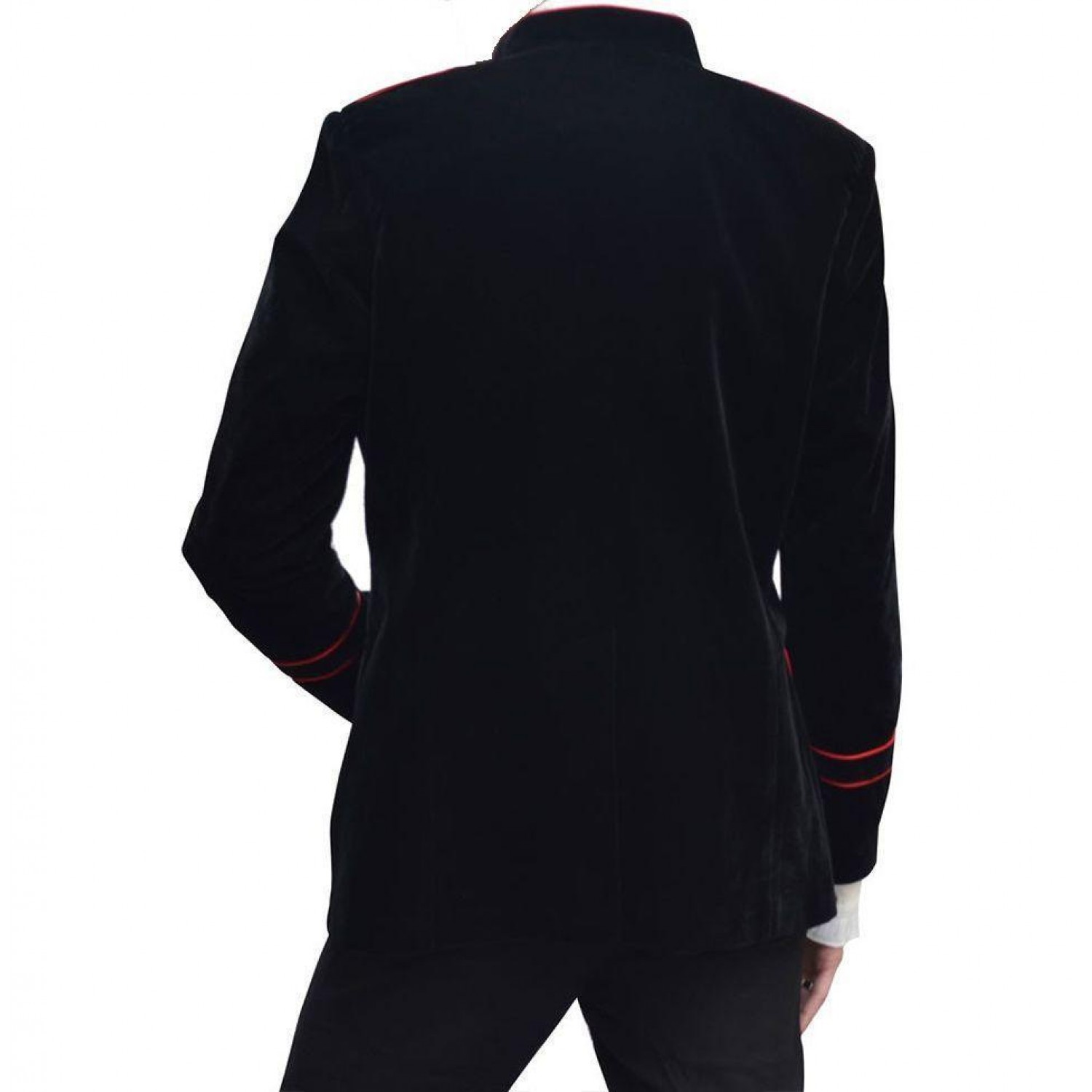 Steampunk Military Style Velvet Coat Black Velvet Red Pipping Jacket
