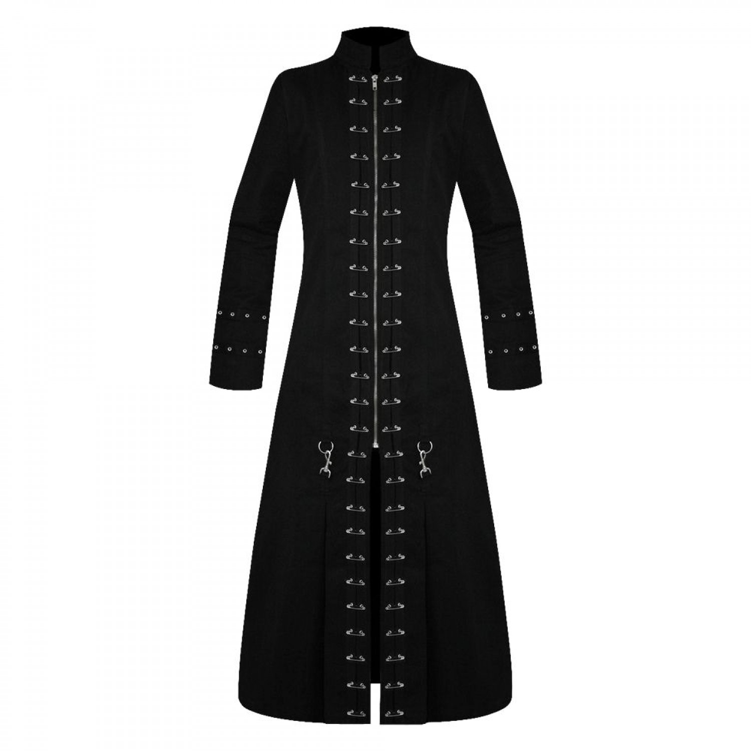 Vampire Pinhead Long Coat Black Gothic Metal Buckles Full Length Coat