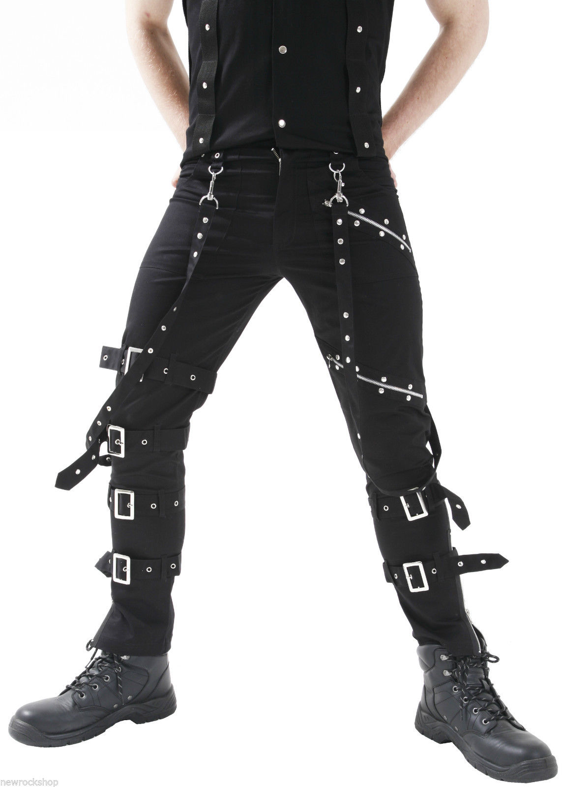 Men Gothic Pants Black Bondage Men Trousers Cotton Studs Metal Punk Pant
