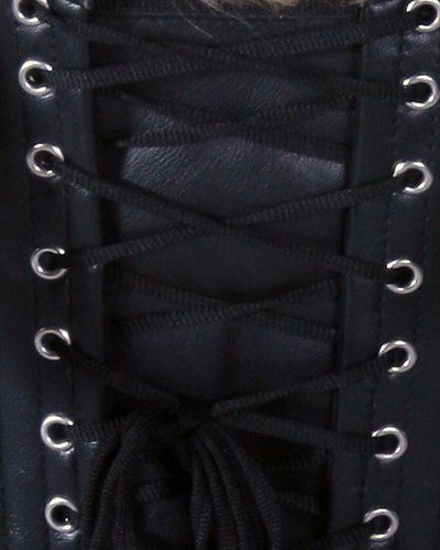 10 spring steel bones and 4 rigid steel bones around the grommets for reinforcement for tighter lacing.
