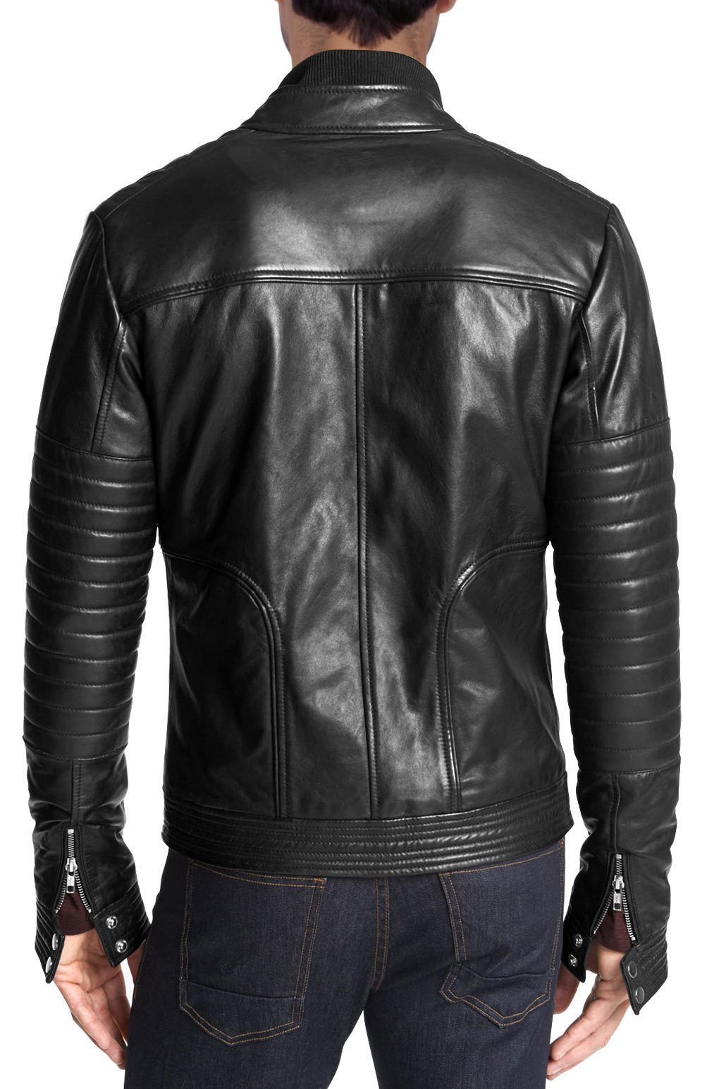 Men Black Genuine Cow Skin Leather Jacket Double Zipper Biker Leather Jacket