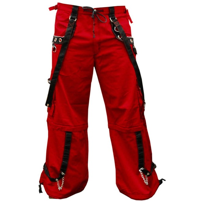 Men Red Gothic Trouser Black Straps Punk Rock Metal Chain Shorts Cyber Trouser