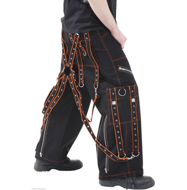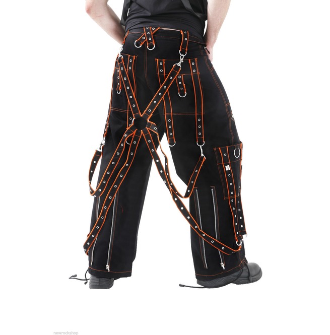 Men Orange Thread Black Pant Studs Metal Punk Cotton Coat