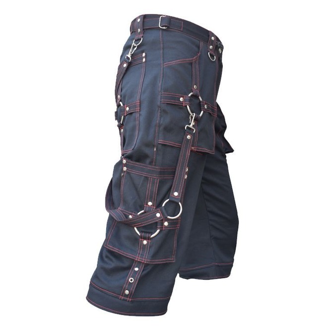 Men Gothic Bondage Red Thread Shorts Punk Metal Rock Goth Short