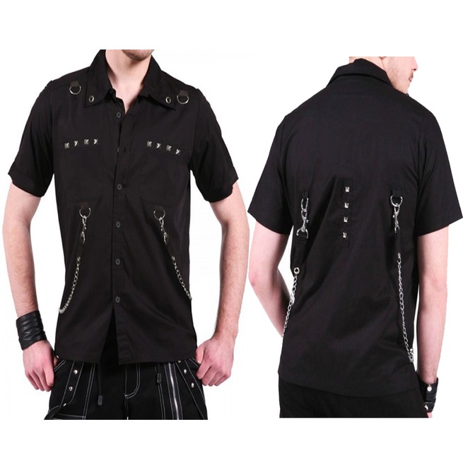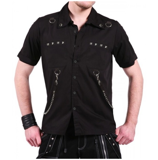 Men New Gothic Shirt Punk Rock Black Cotton Shirt With Chains D Rings Studs