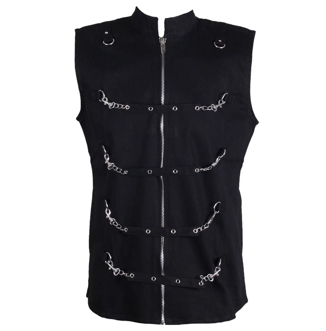 Men Gothic Cotton Vest Front Back Chains Evil Goth Vest