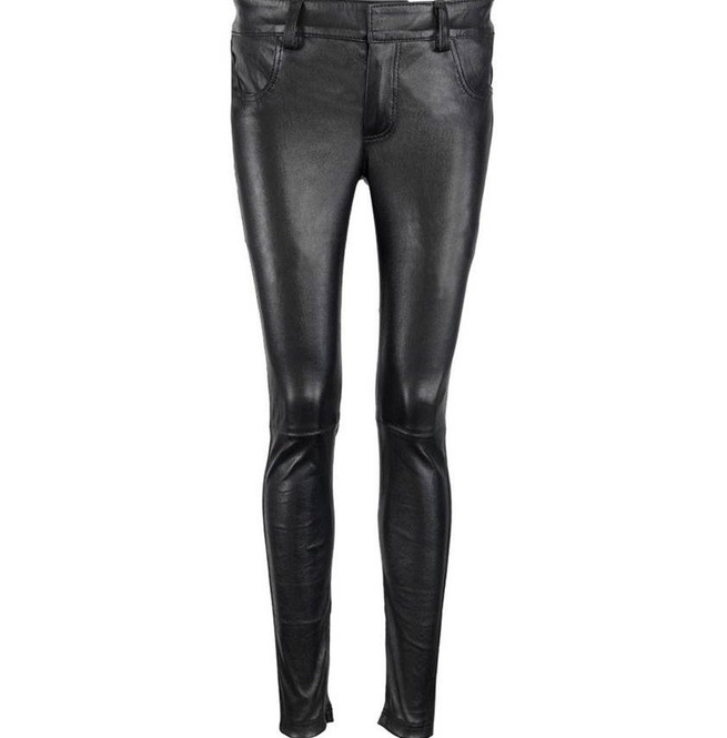 Lambskin Leather Jeans Style Fitted Pant For Women Featuring: