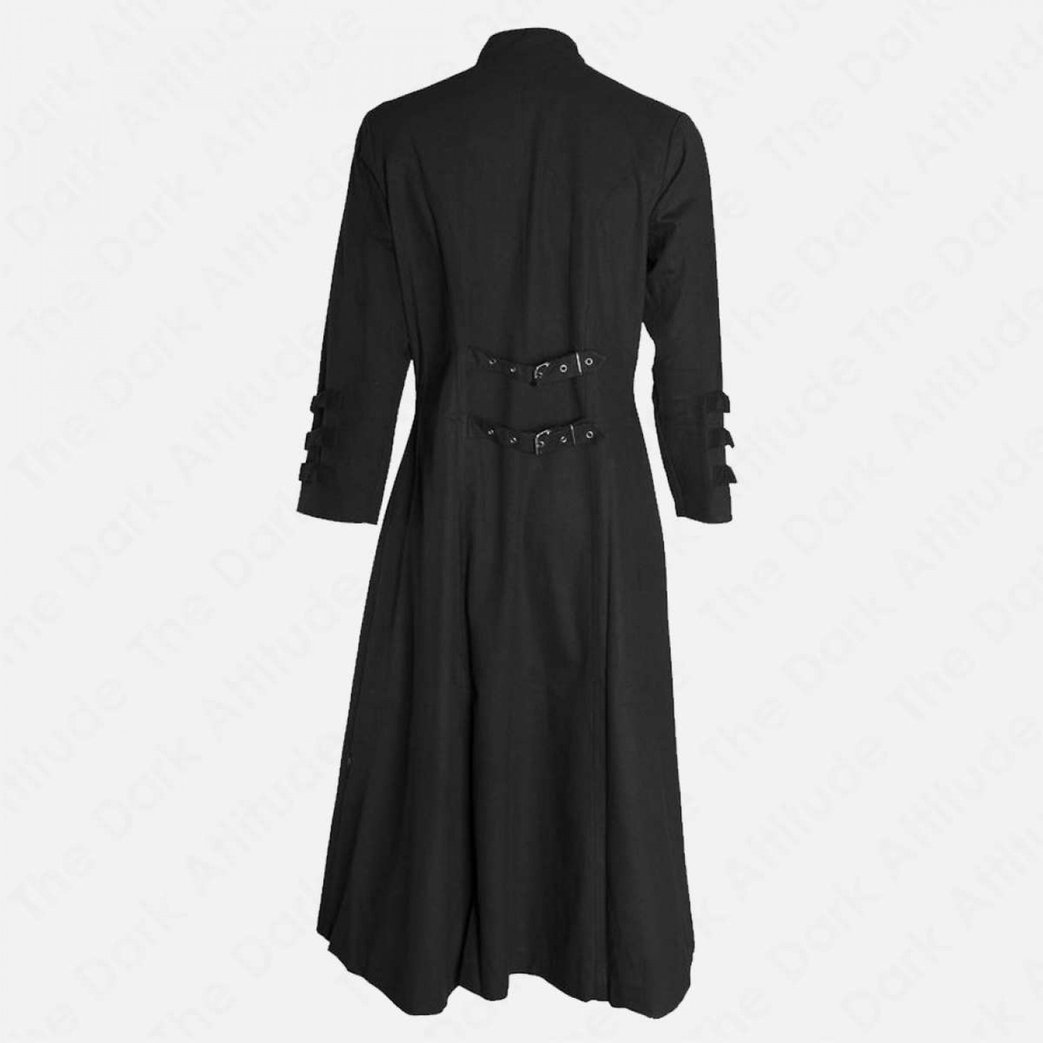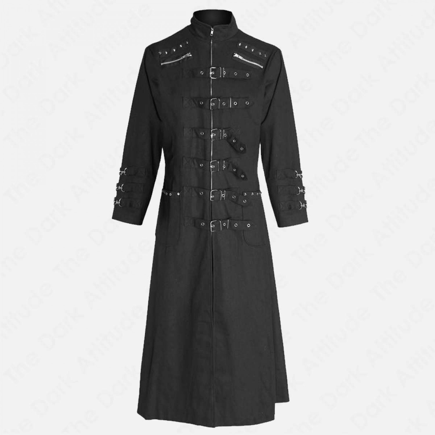 Gothic Long Zipper Trench Coat Men Full Length Rivets Straps Black Coat