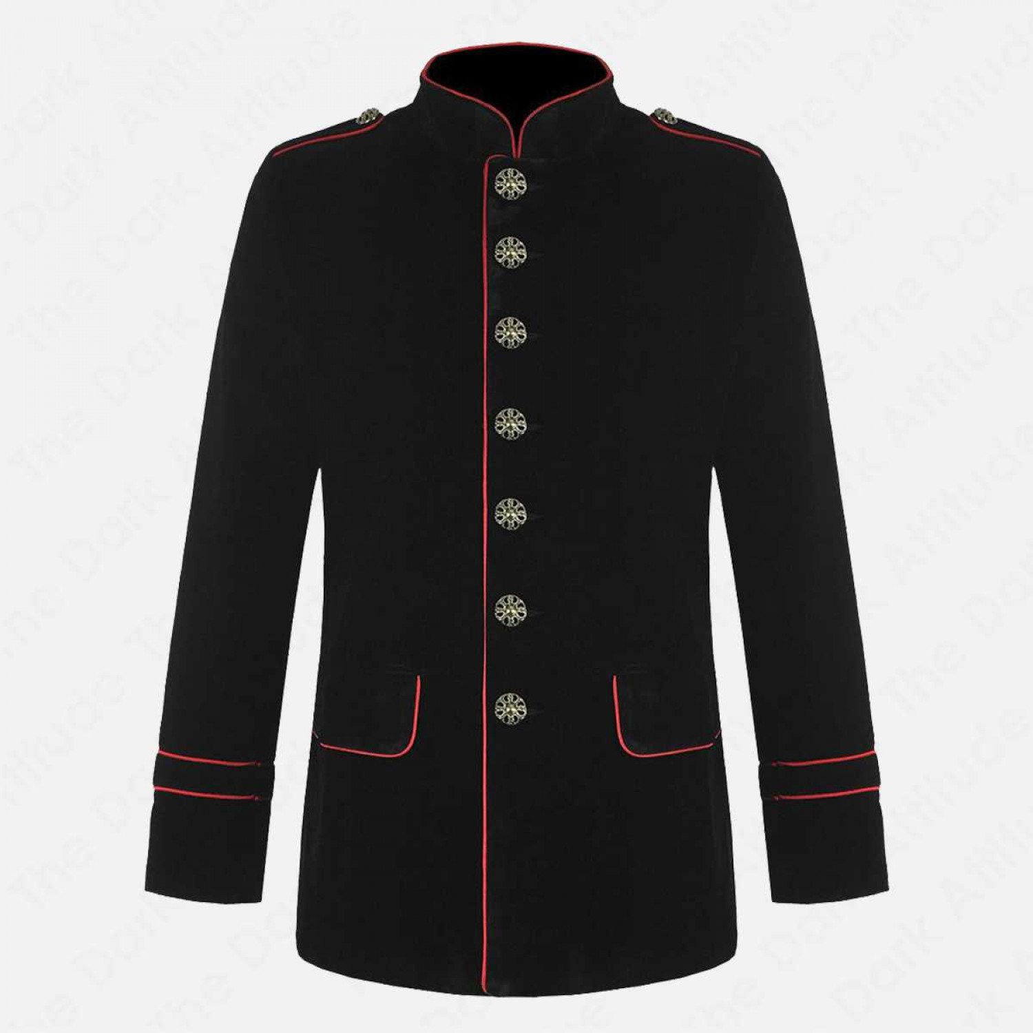 Steampunk Black Cotton Jacket Red Pipping Military Band Goth Coat Men
